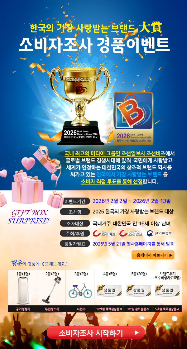 2026 한국의 가장 사랑받는 브랜드를 가리기 위한 소비자 설문 이벤트를 진행합니다.